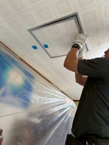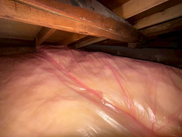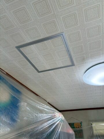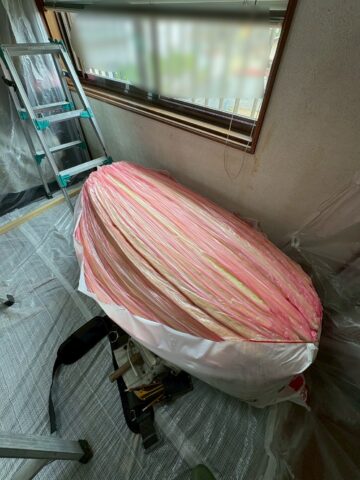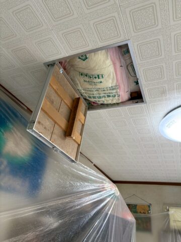 内窓による窓の断熱工事に続いては、断熱材による天井の断熱工事を行います。