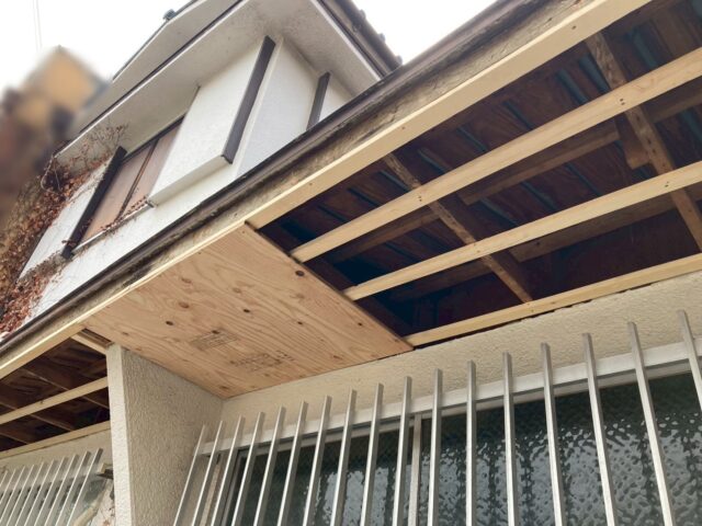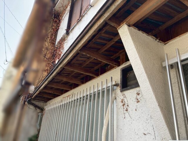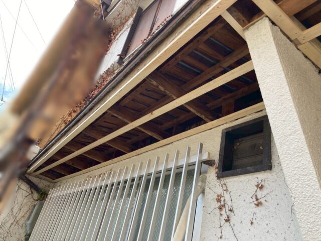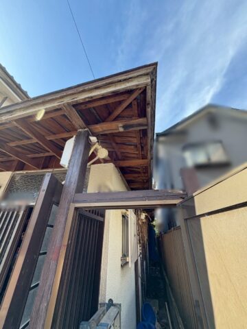 これを機会に庇全体を修繕させていただきます。まずは、解体作業がスタート。