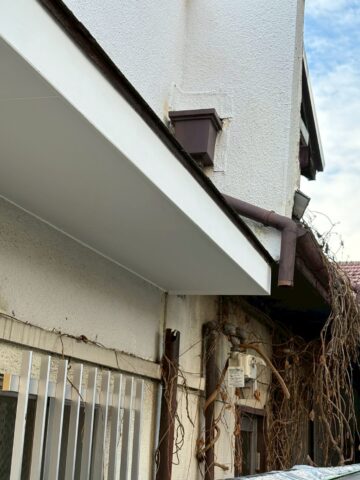 一部なくなってしまった樋をつなぎ修繕しました。樋の機能も復活しました。