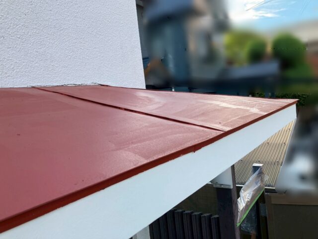 庇の板金はケレンがけ、錆止め、塗装で仕上げました。