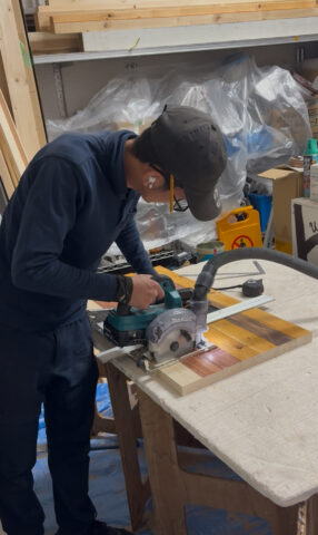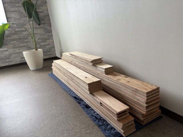 まずは、合板をカット。お好きなものを選んでいただけるよう様々なサイズをご用意。