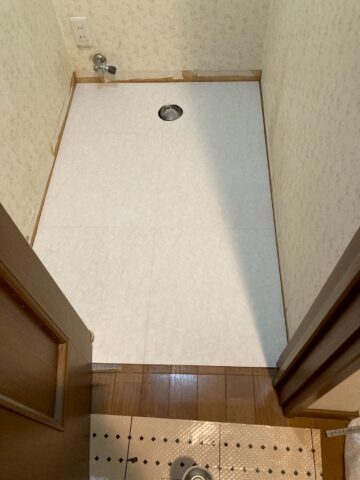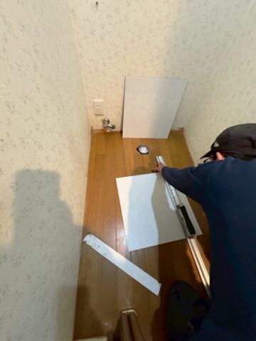 フロアタイル(RS-2121 ペルチーノR)をカットし、張っていきます。