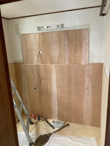 壁と床に断熱材を敷き詰め、合板を張り、クロスを張りました。