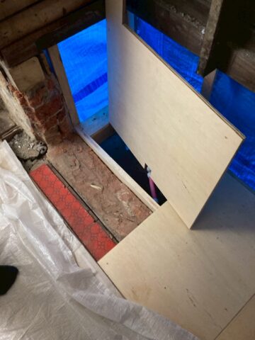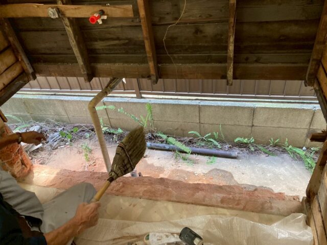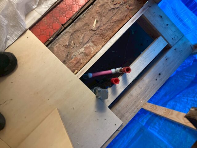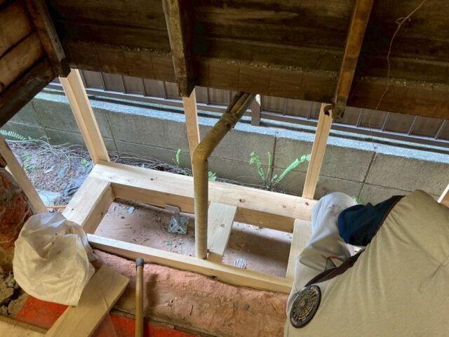 玄関庇修繕工事・玄関ホール天井工事に続いて、洗面脱衣室工事をお届けします。