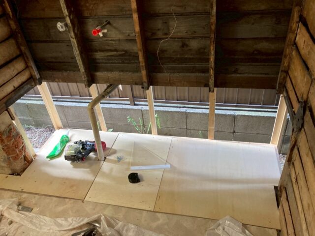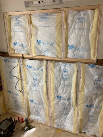 壁と床に断熱材を敷き詰め、合板を張り、クロスを張りました。