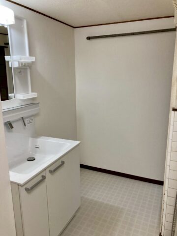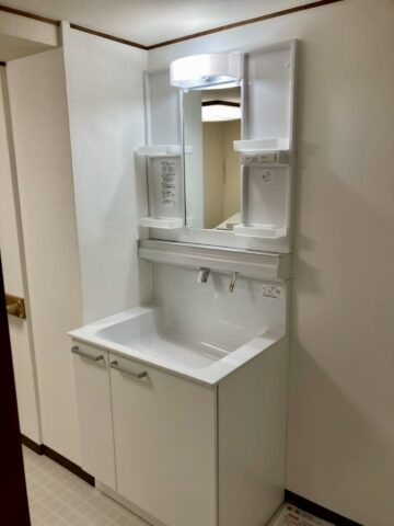 洗面化粧台【TOTO オクターブライト】を設置。横には、洗濯機のスペースを確保。使い勝手もアップ。