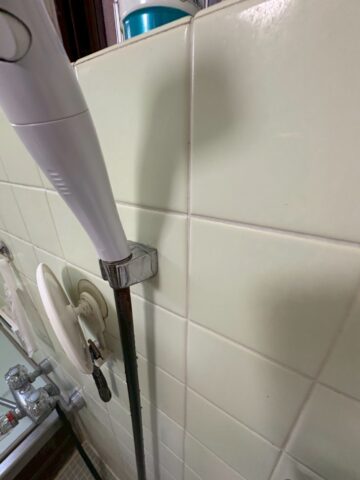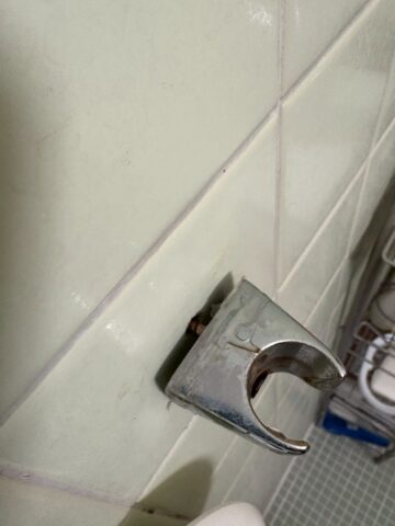 ビス穴が広がって、シャワーヘッドを置く度にカタカタと揺れてしまうフック。