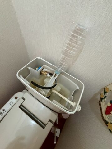 こちらは、トイレを使用した後も、水がチョロチョロと流れて止まりません。お困りのご様子が、画像からも伝わってきます。