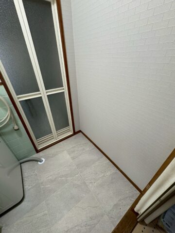 段差があった床の高さが一律になりました。こちらのクッションフロアは、床暖房対応のものです。
