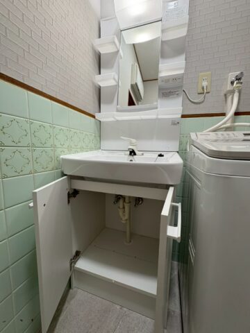 洗面化粧台の水栓からの水漏れでお悩みのS様。、長くお使いの洗面台なので、これを機に交換する事になりました。