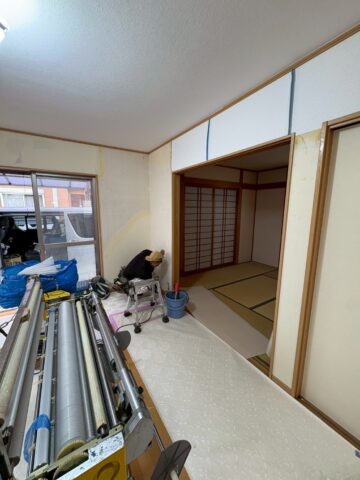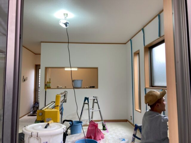 LDK全体のクロスを張り替えていきます【キチン側BB2032・リビング側BB2063】