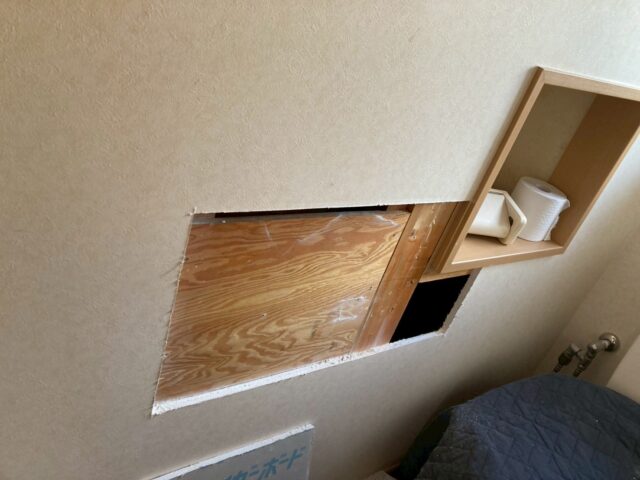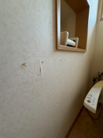 続いてはトイレ。紙巻き器固取り付けカ所に下地がありません。
