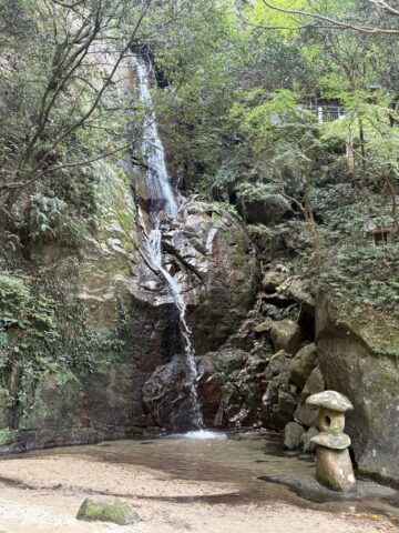 橋を渡ると、滝が。マイナスイオンをたっぷり浴びて気持ちいい!!