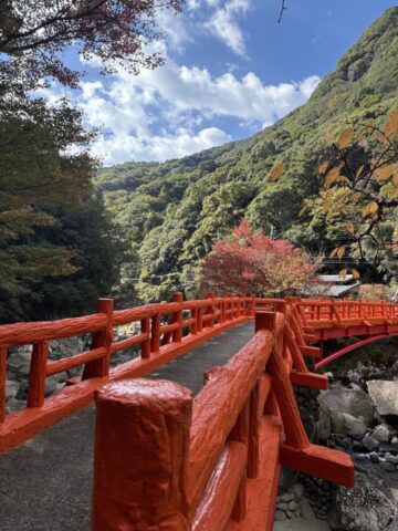 【奇絶峡】へ紅葉狩り。真っ赤な橋が目を引きます。