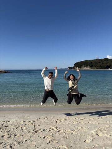 11月の白浜の海。こんなに綺麗だなんて初めて知りました。青い空に透き通る海に真っ白な白浜。