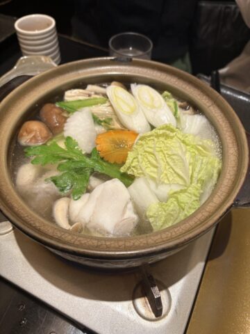 夜は、【㐂楽】さんで 名物のクエ鍋をいただきました。一人前でもボリューミー。