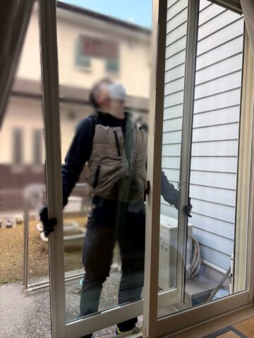 新しいペアガラスに入れ替えたサッシを、窓枠にはめ込み、元に戻します。