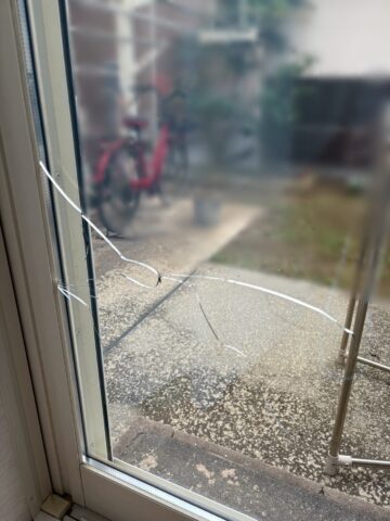 築11年の掃き出し窓。ペアガラスの室内側のガラスが『朝確認すると、割れていた』そうです。
