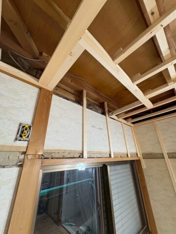 作業は進みましたが、天井は変な形のまま。一部だけ天井がくり貫かれているようです。