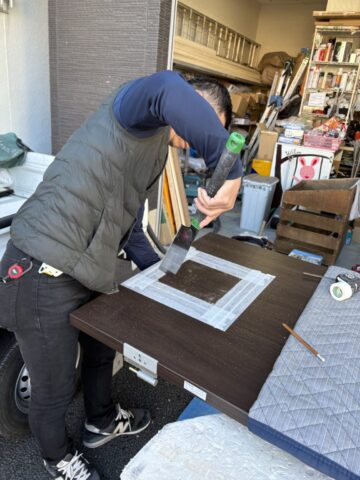3部屋の建具をしっかり養生をして一度引き取り、弊社で作業開始。
