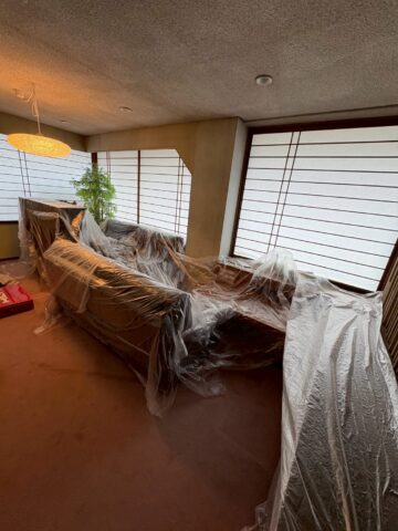 続いて、応接室。家具に養生を施し、移動しながら作業を進めます。
