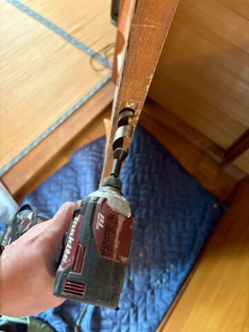 その際は、寝室へ出入りができるように応急処置を施しました。年が明け、材料をご用意したうえで今回の工事に至りました。