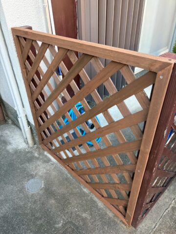 木製の面格子状に組まれたフェンス【ラティス】を利用してご主人様が作られた目隠しフェンスです。