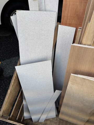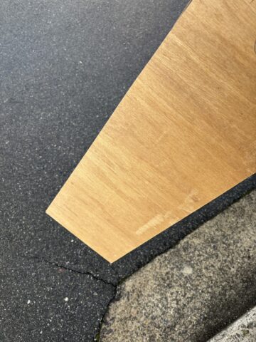 ベニヤの裏面。これはプリント合板と呼ばれる建材で、厚さ3mm程度の薄い板です。仕上げに用いられます。