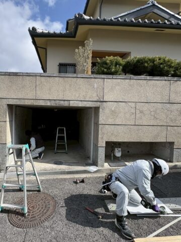 度々工事のご用命を頂いているI様。長年ご利用のガレージ手動シャッター。