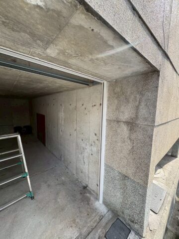 既存のシャッターを撤去。左右に新しいガイドレールを取り付けます。