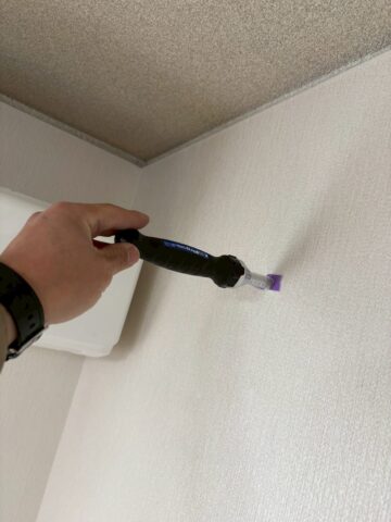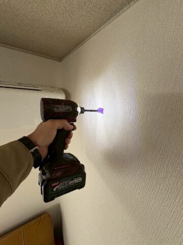 時計を取り付ける位置をM様ご夫婦とご相談し、下地を確認します。