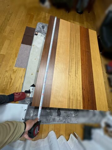 先ずは現状のテーブルの大きさを計測し、ご希望のサイズを確認します。