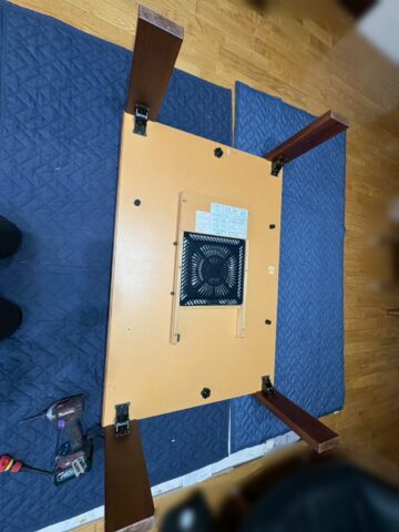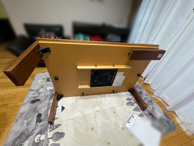 今後はコタツ机として使う予定がないそうなので、工事でヒーターは取り外すことになりました。