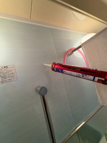 ビス穴から水が入らないように、先にコーキングを充填してからフックを取り付けます。