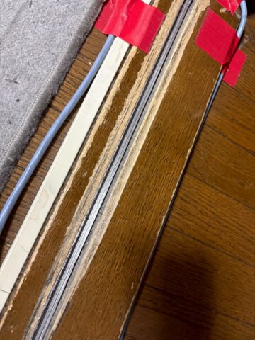 埋め込みレール自体が歪んでおり、敷居にも擦れ跡が確認できます。