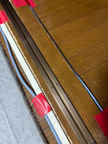 敷居には新しいレールが取り付けれました。調整を行い、軽い力で扉が動く事を確認して、作業完了です。