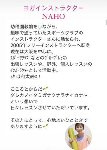 幼稚園教諭を引退後、20年インストラクターとしてご活躍されているNAHO先生。
