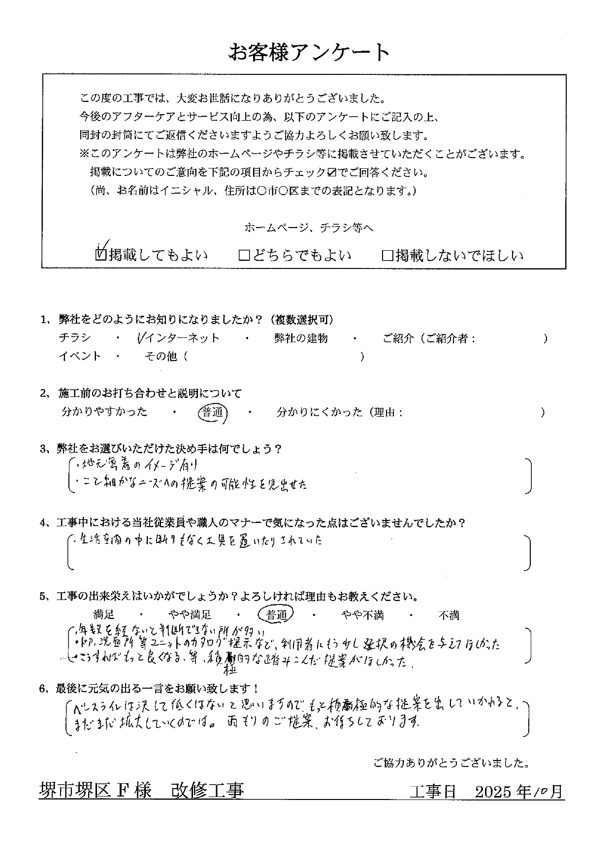 ・ドア、洗面所等ユニットのカタログ提示など、利用者にもう少し選択の機会を与えてほしかった