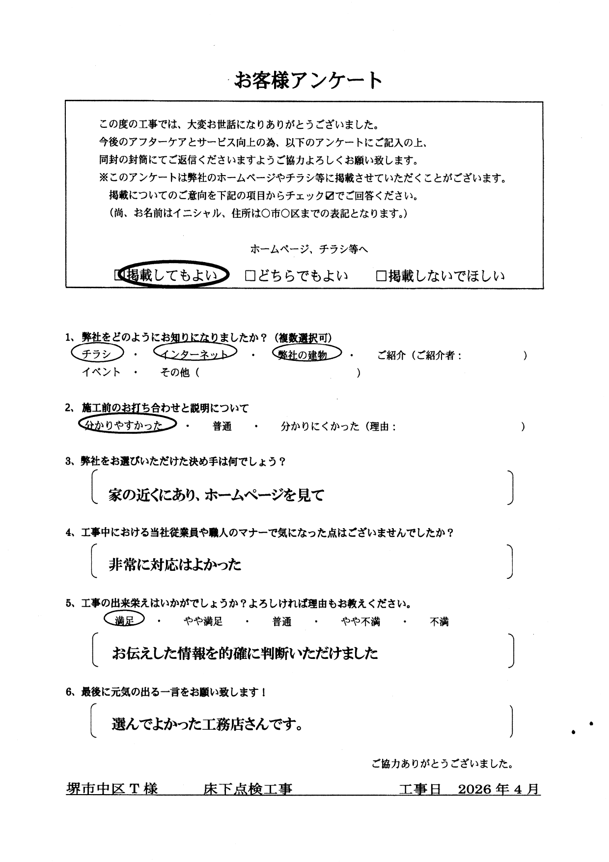 施工日:床下点検工事- Q.弊社をどのようにお知りになりましたか?