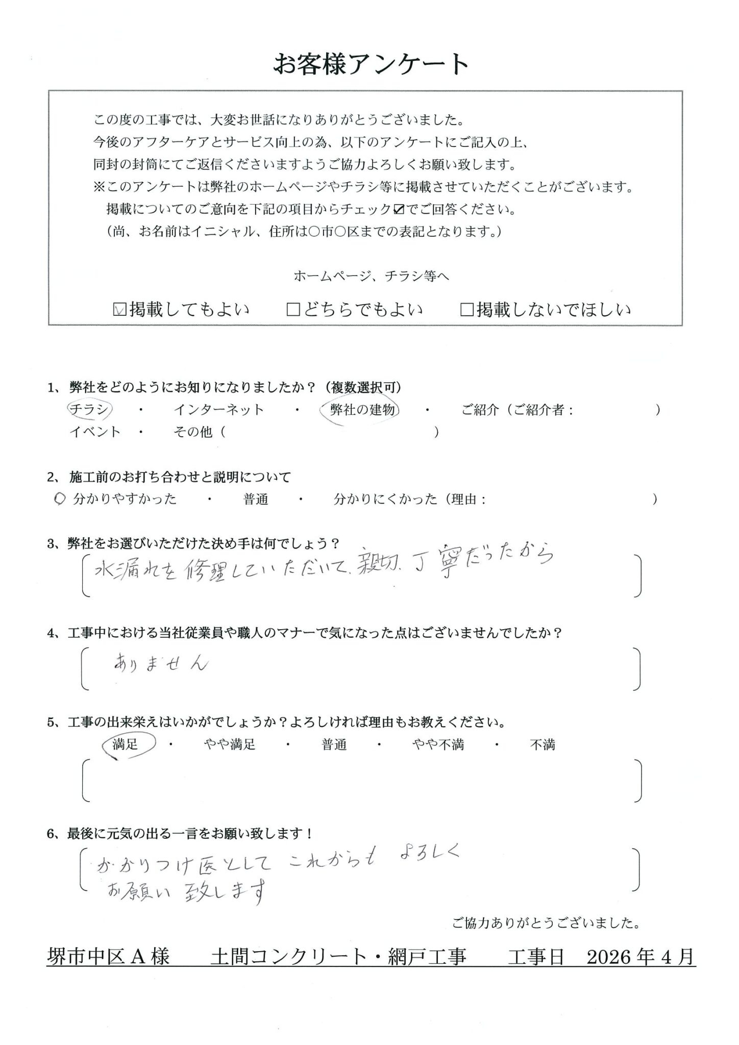 施工日:土間コンクリート・網戸工事- Q.弊社をどのようにお知りになりましたか?