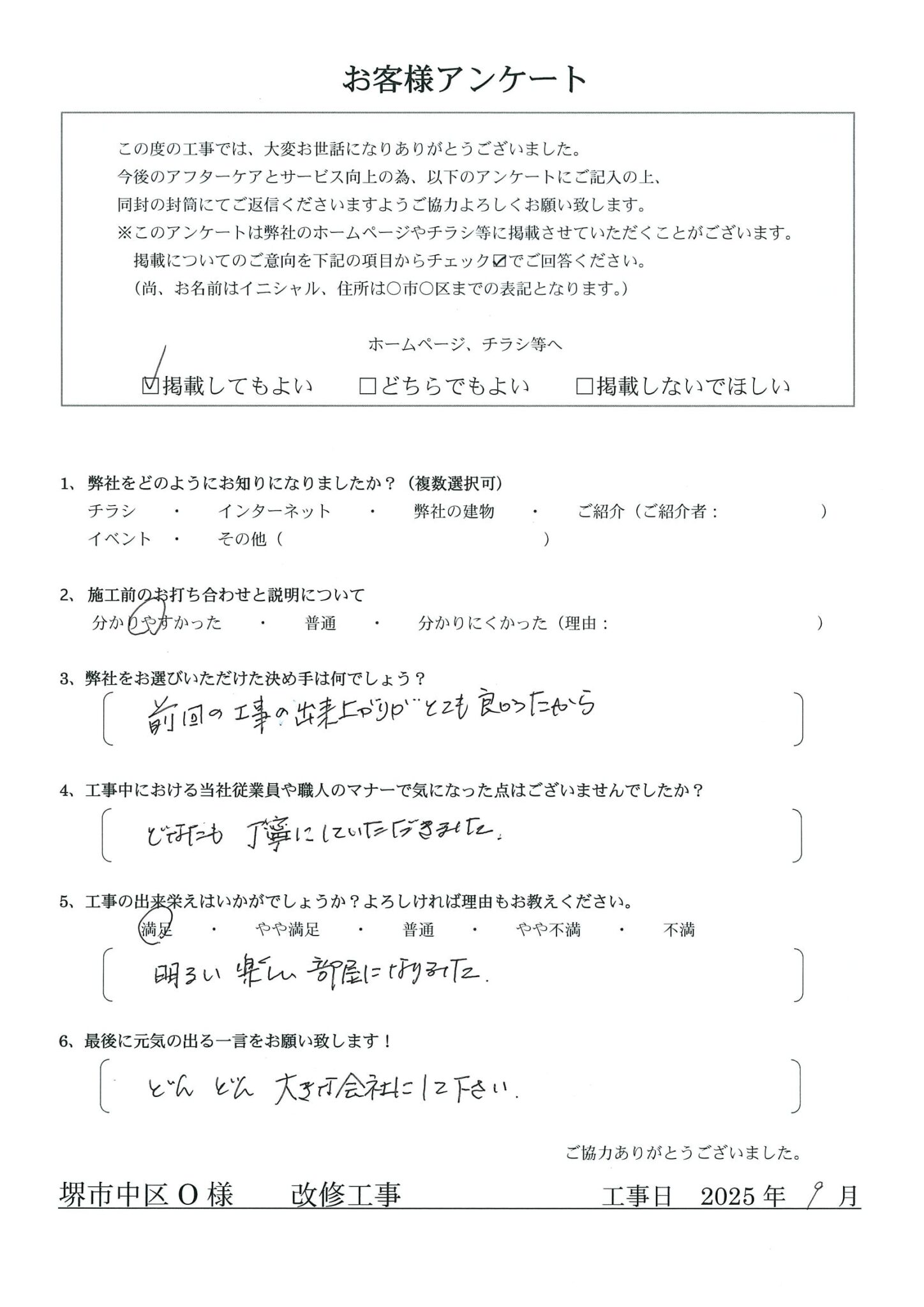 - Q.工事中における当社従業員や職人のマナーで気になった点はございませんでしたか?