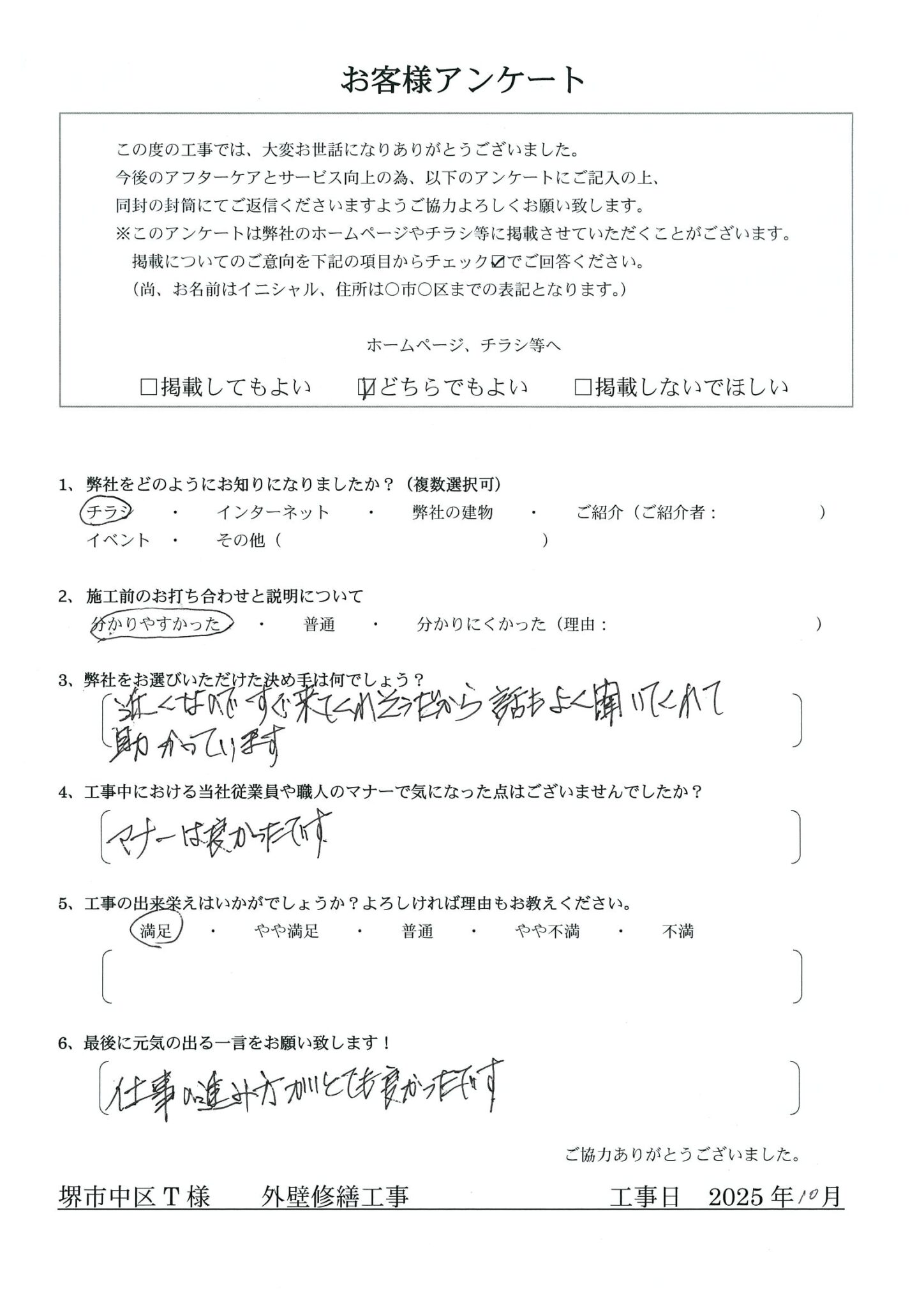 - Q.工事の出来栄えはいかがでしょうか?よければ理由もお教えください。
