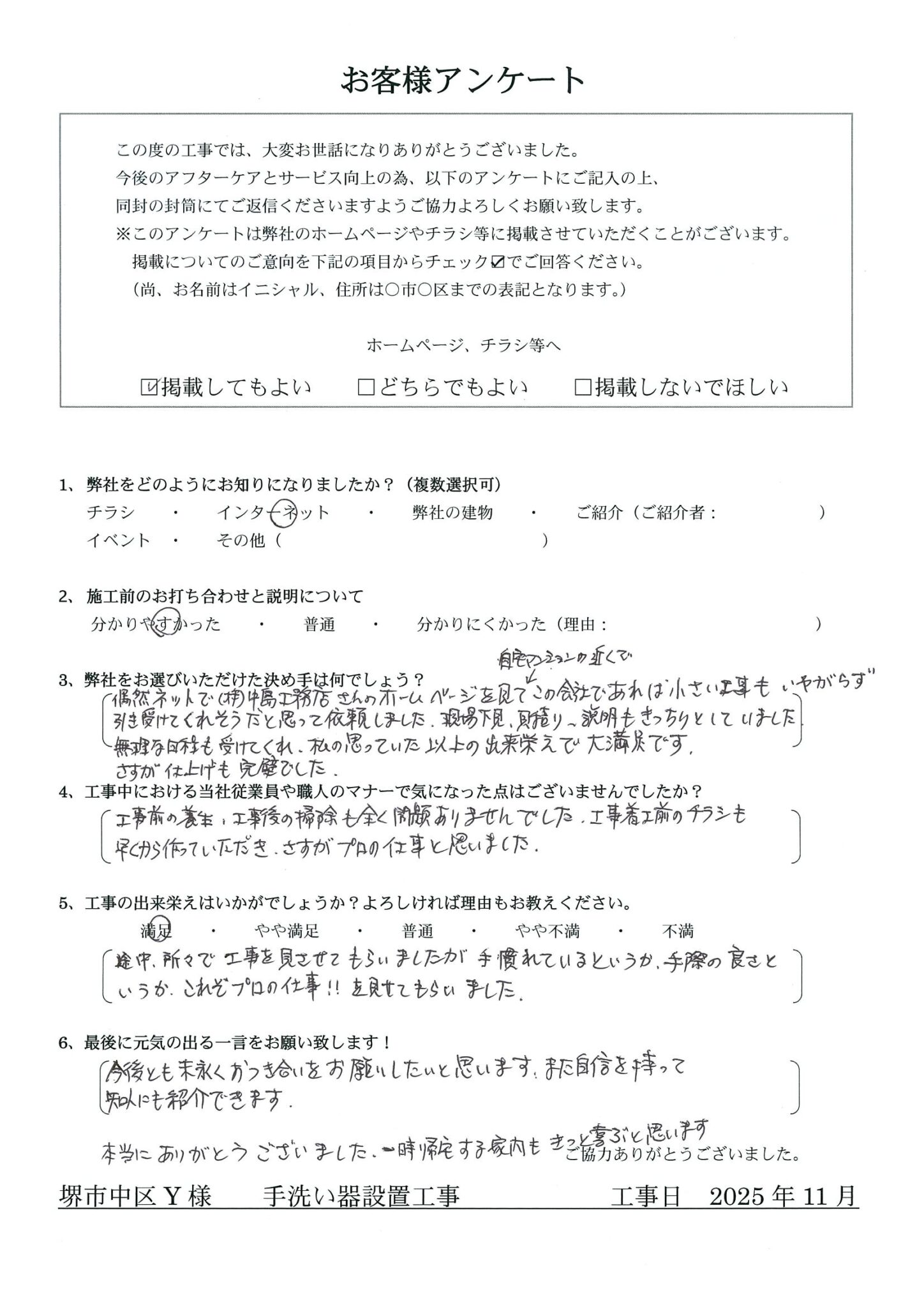 施工日:手洗い器設置工事- Q.弊社をどのようにお知りになりましたか?