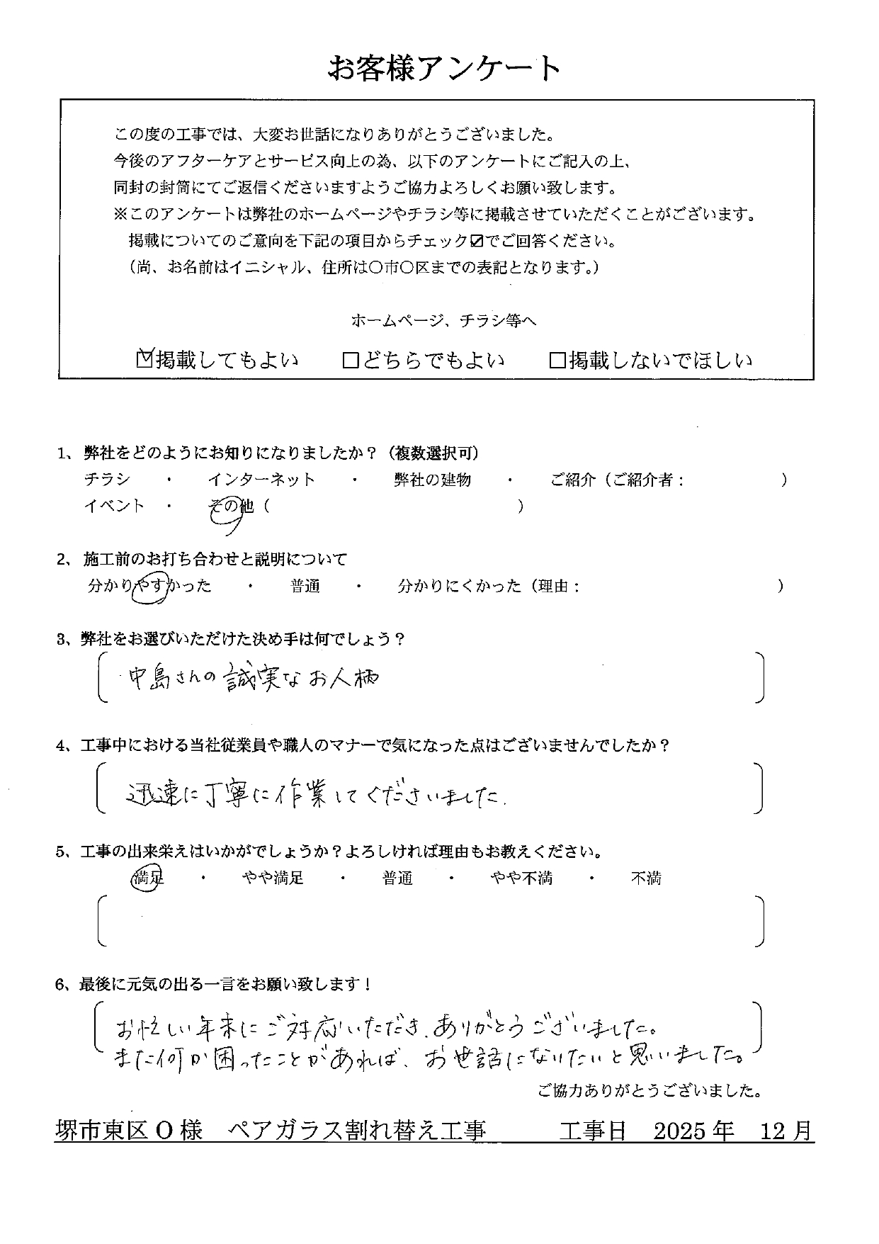 施工日:ペアガラス割れ替え工事- Q.弊社をどのようにお知りになりましたか?