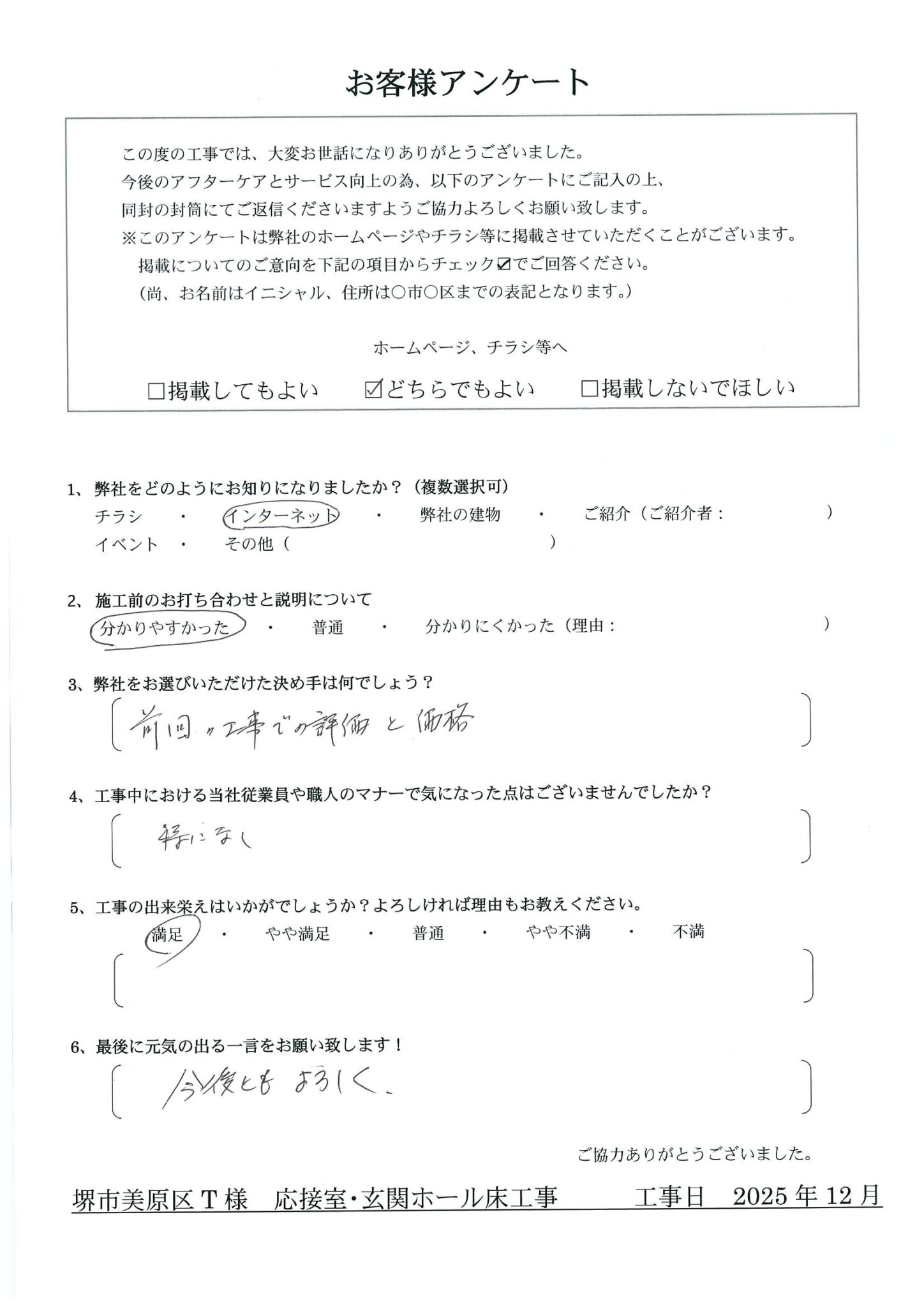 Q.工事中における当社従業員や職人のマナーで気になった点はございませんでしたか?