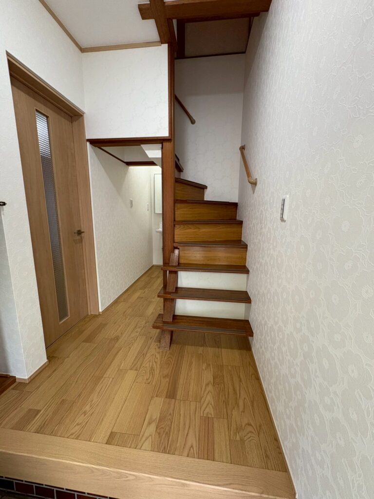 天井・壁のクロスを張り替え、フローリングは上張りを行い、明るく使いやすい玄関になりました。