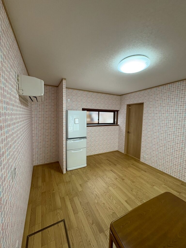 天井・壁のクロスを張り替え、床のフローリングを上張りしました。お気に入りの掘りごたつは、再度取り付けています。