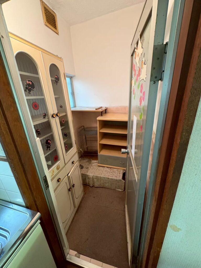 LDKのドアから続くお部屋は、昔は浴室でした。今は、食器棚や物入としてお使いです。
