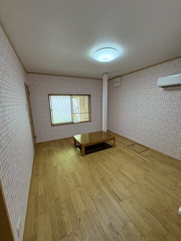 天井・壁のクロスを張り替え、床のフローリングを上張りしました。お気に入りの掘りごたつは、再度取り付けています。