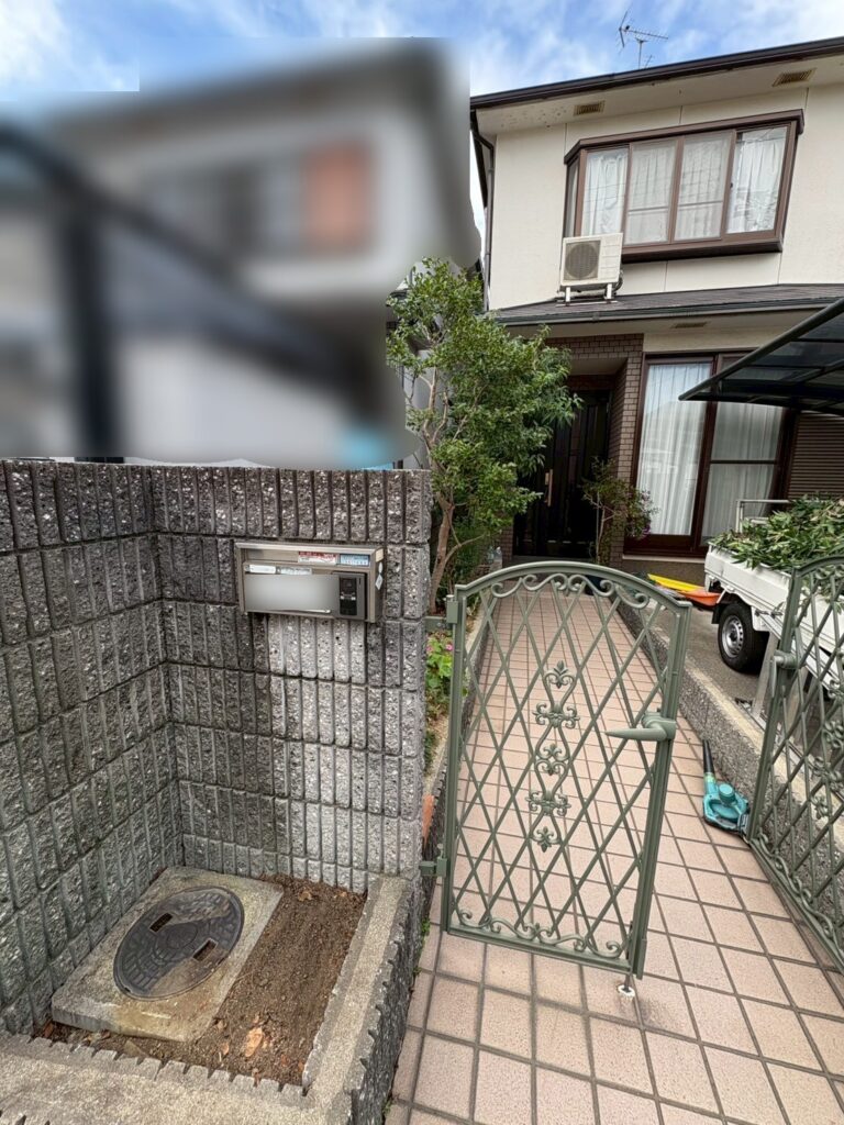 作業完了。ポストの前の木も、アプローチの木もすっきりしました。